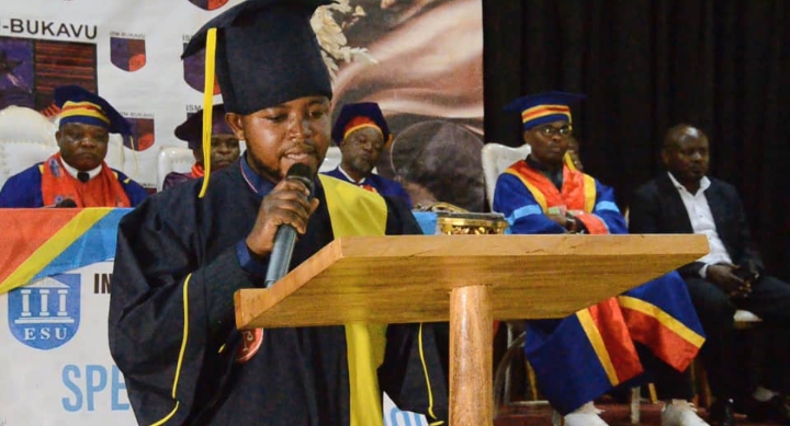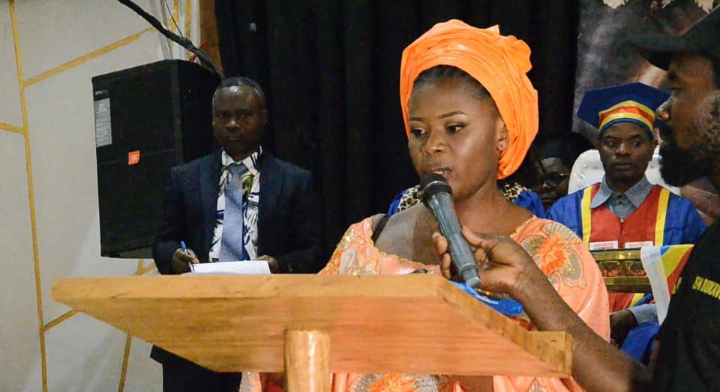 Devant un parterre d’invités Mme Esther Habamungu Porte parole des Étudiants instruits à l’Institut supérieur de Management se réjouit d’être formée dans une institution qui fait la fierté de la province du Sud-Kivu.